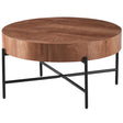 Moderner runder Couchtisch in Braun mit MDF-Tischplatte und schwarzem Metallgestell. Durchmesser Ø 80 cm, 42 cm hoch, stabil und pflegeleicht.