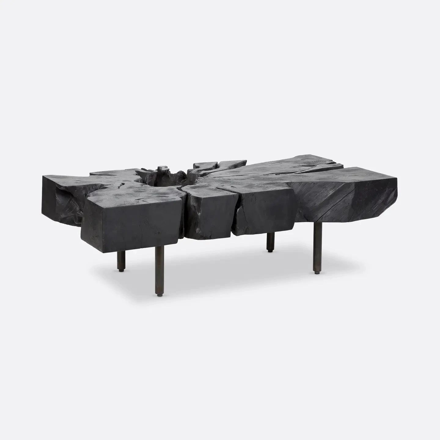 Trotz der unregelmäßigen Formen und der natürlichen Löcher in der Wurzel ist jedem Tisch eine Nutzfläche von mindestens 60% garantiert. Vervollständigt wird das Design durch vier kaum wahrnehmbare Beine aus Eisenrohr, die dem Holz in seiner reinsten Form die volle Geltung verleihen.