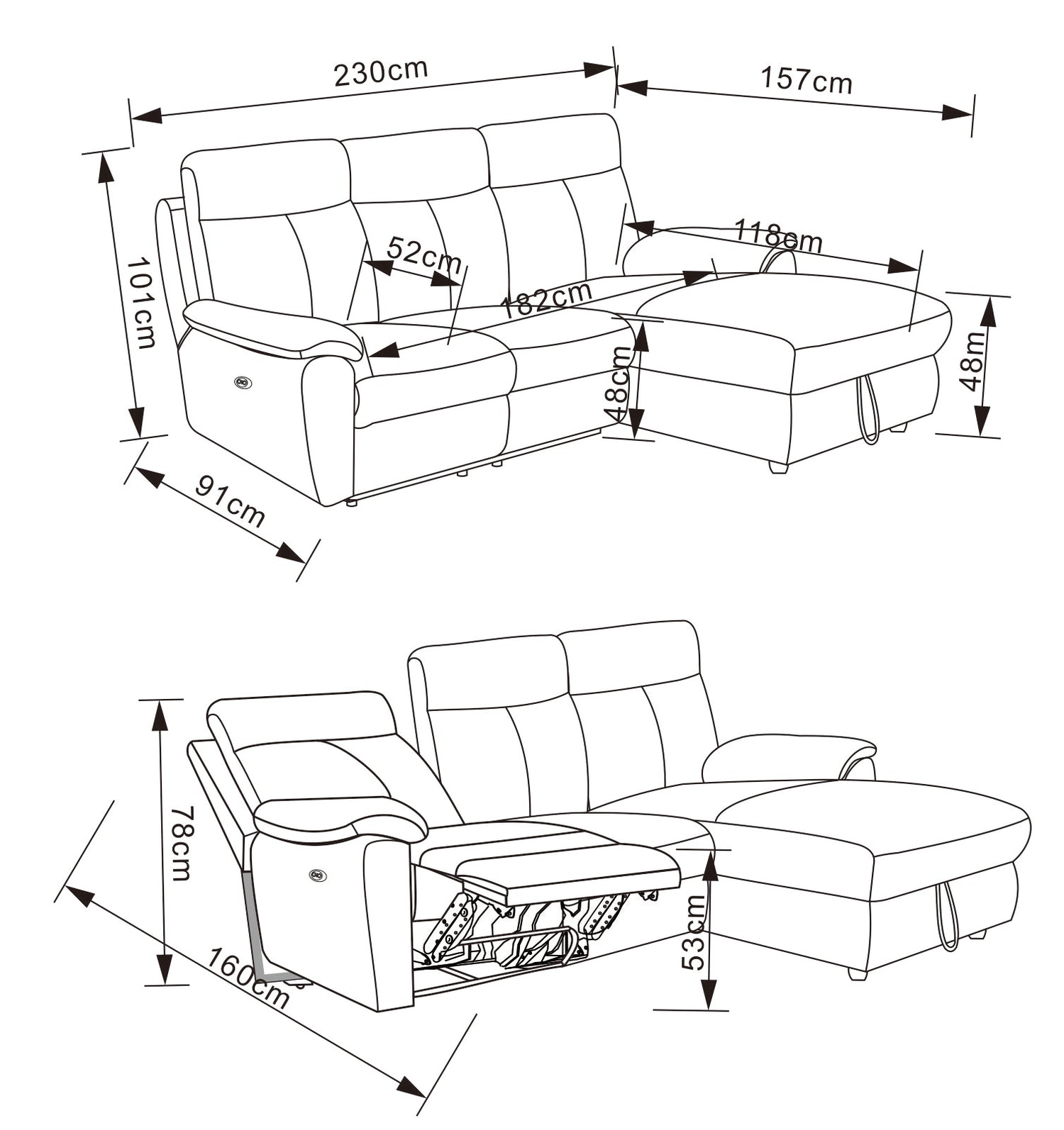 Das Highlight des Sofas ist die manuell verstellbare Liegefunktion: