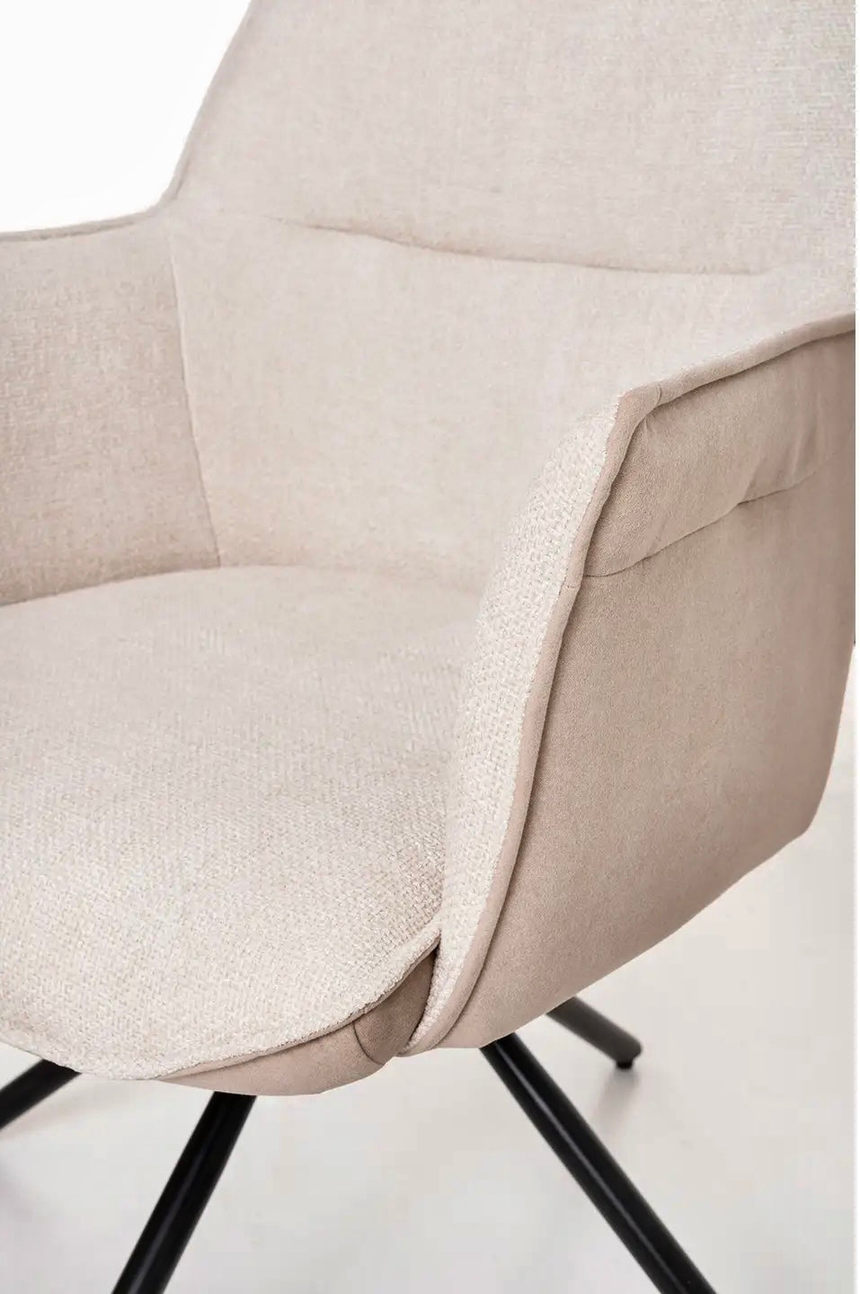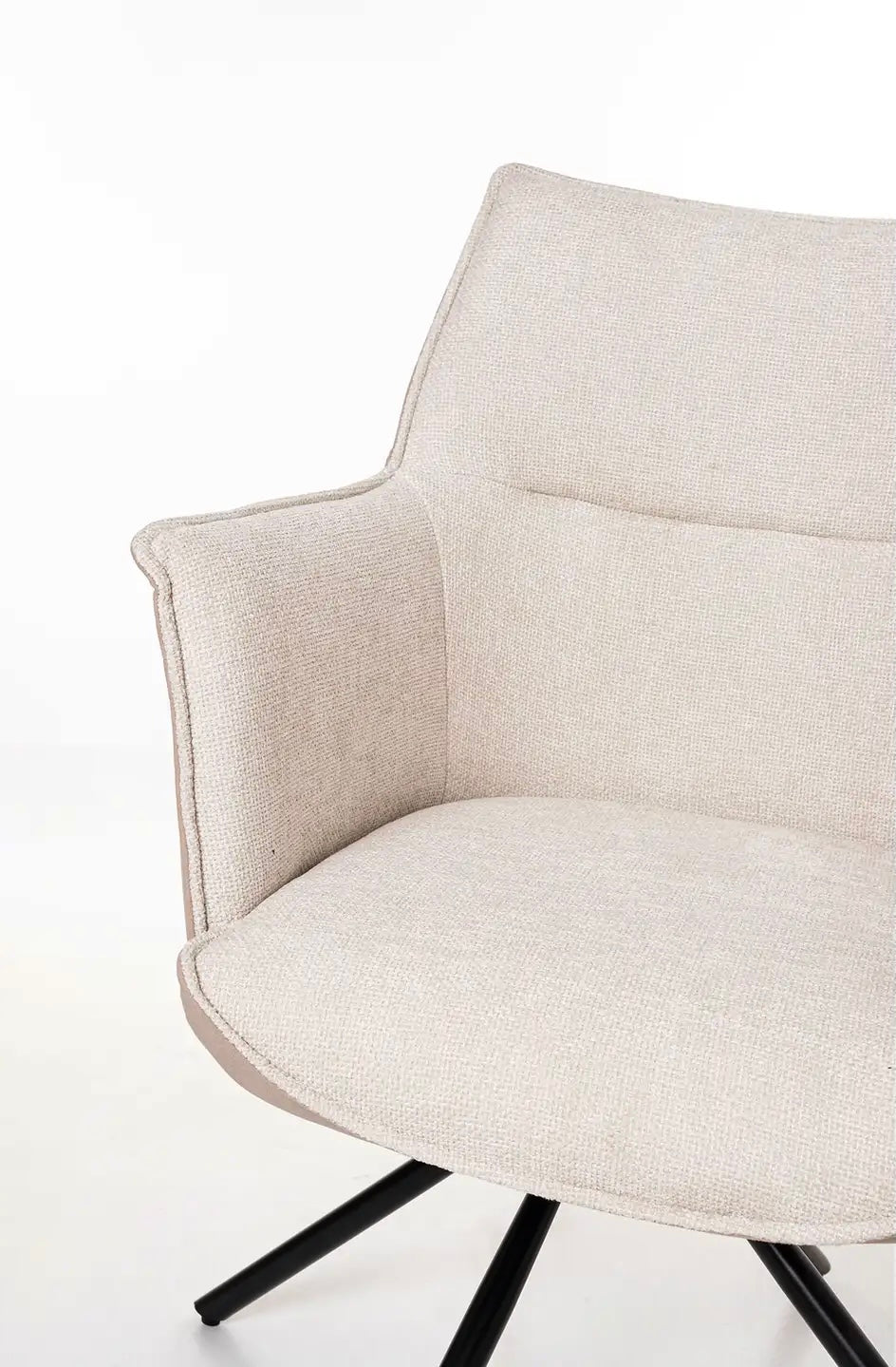 360º-Drehstuhl von Rose, beiger Polsterung, schwarze Metallbeine.