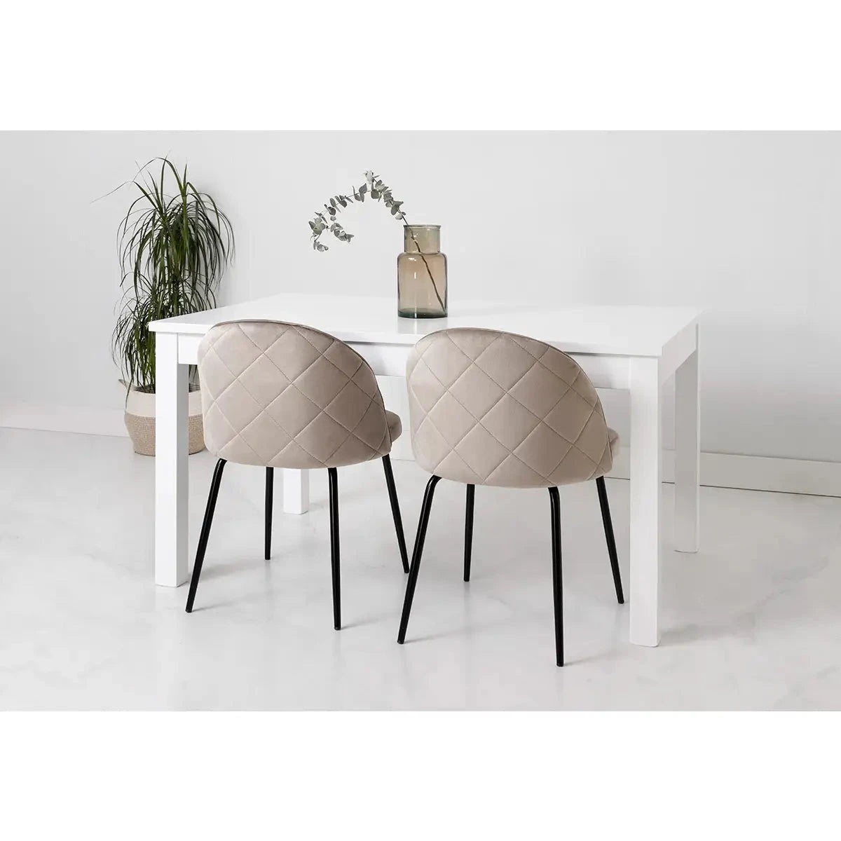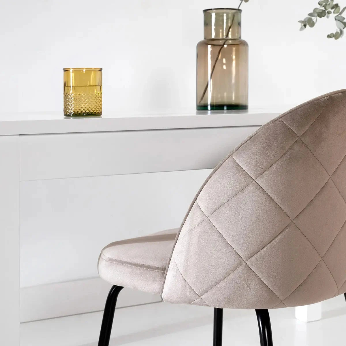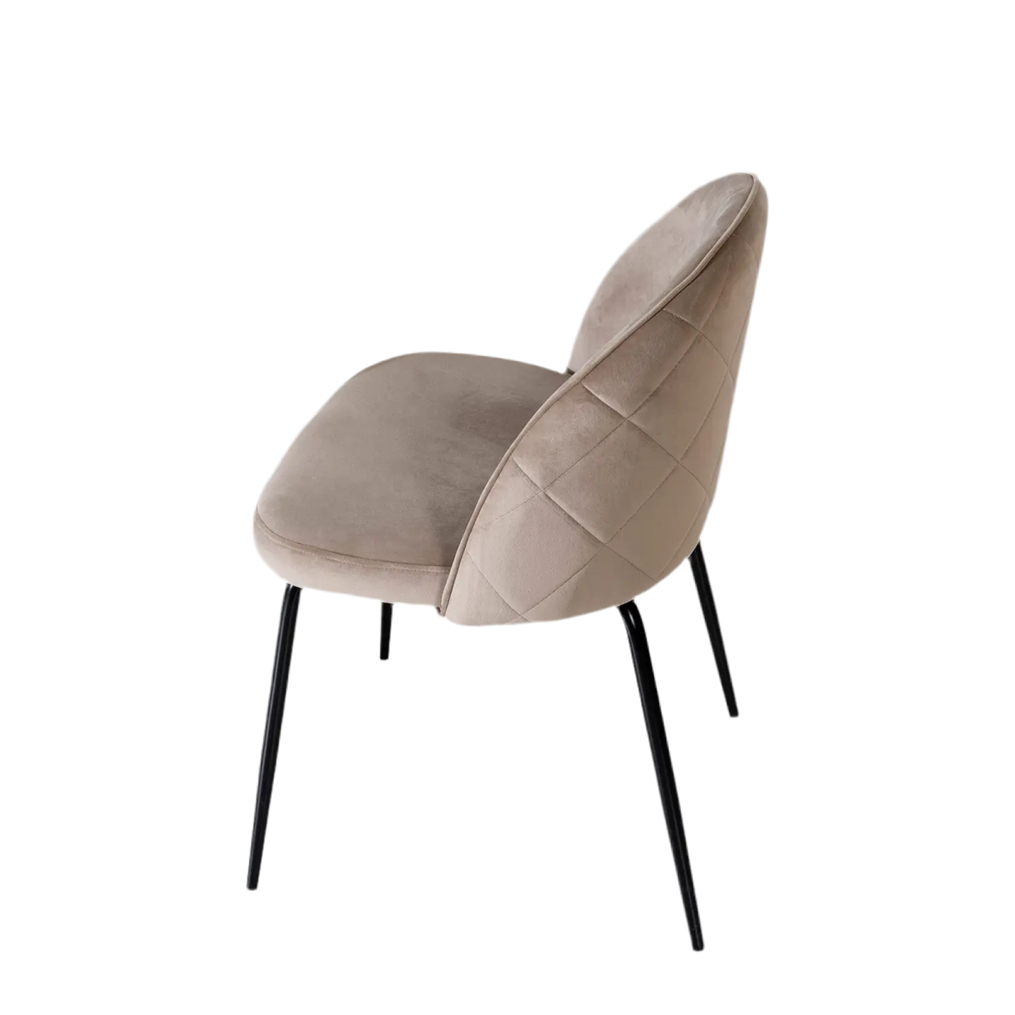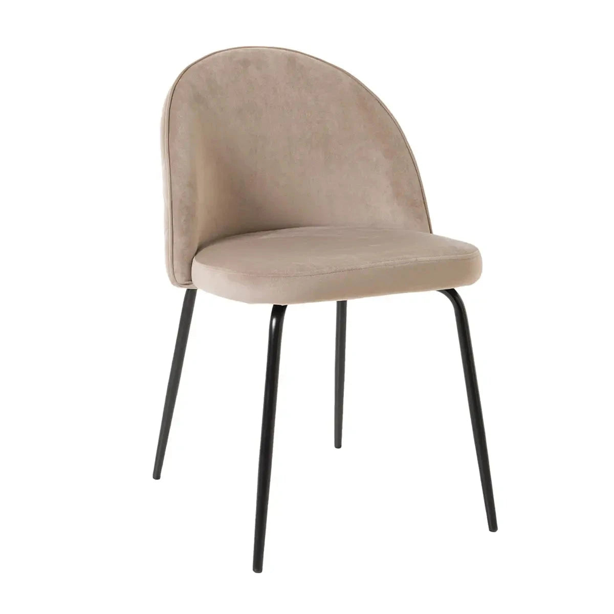 Stuhl Ursula aus kamelfarbenem Samt, schwarze Beine. Maße: 80 x 48 x 53 cm.