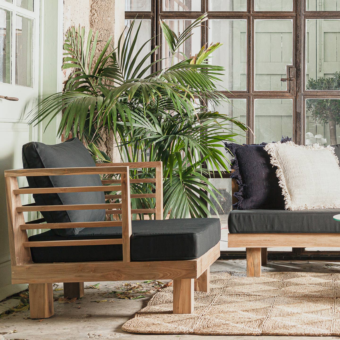 Material: Recyceltes Teakholz (Gestell), Olefin (Polster)