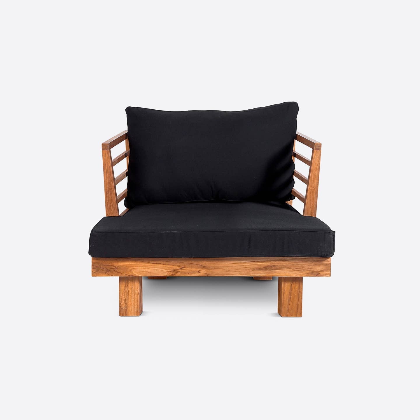 Teakholz ist dank seiner natürlichen Widerstandsfähigkeit besonders wetterfest und somit ideal für den Einsatz im Garten, auf der Terrasse oder dem Balkon. Das besondere gestreifte Design der Rückenlehne, das seitlich in elegant geschlossene Armlehnen übergeht, sorgt nicht nur für visuelle Highlights, sondern auch für erhöhten Sitzkomfort durch den leicht geneigten Rückenteil.