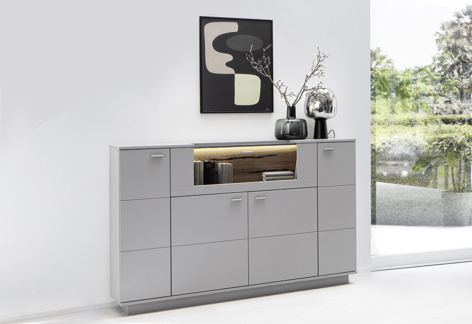 Sevilla Highboard Kommode LED 160 x 113 x 38cm arktisgrau