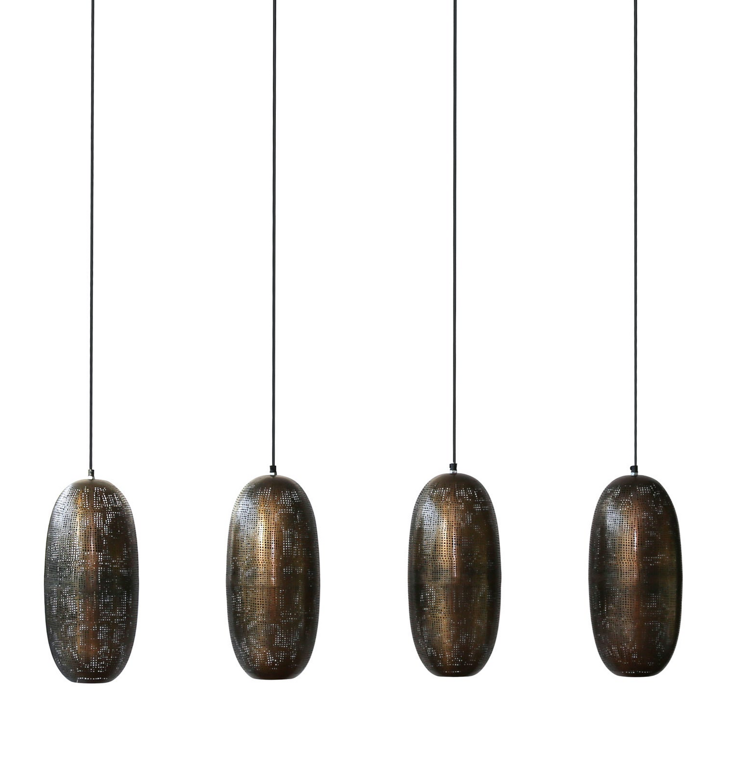 Die Hängelampe „Kosmisch“ überzeugt durch ihr modernes Design und verleiht jedem Raum eine stimmungsvolle Atmosphäre. Gefertigt aus Metall mit einem bronzefarbenen Antik-Finish, beeindruckt sie durch ihre handgearbeiteten Löcher, die für eine bezaubernde Lichtstreuung sorgen.
