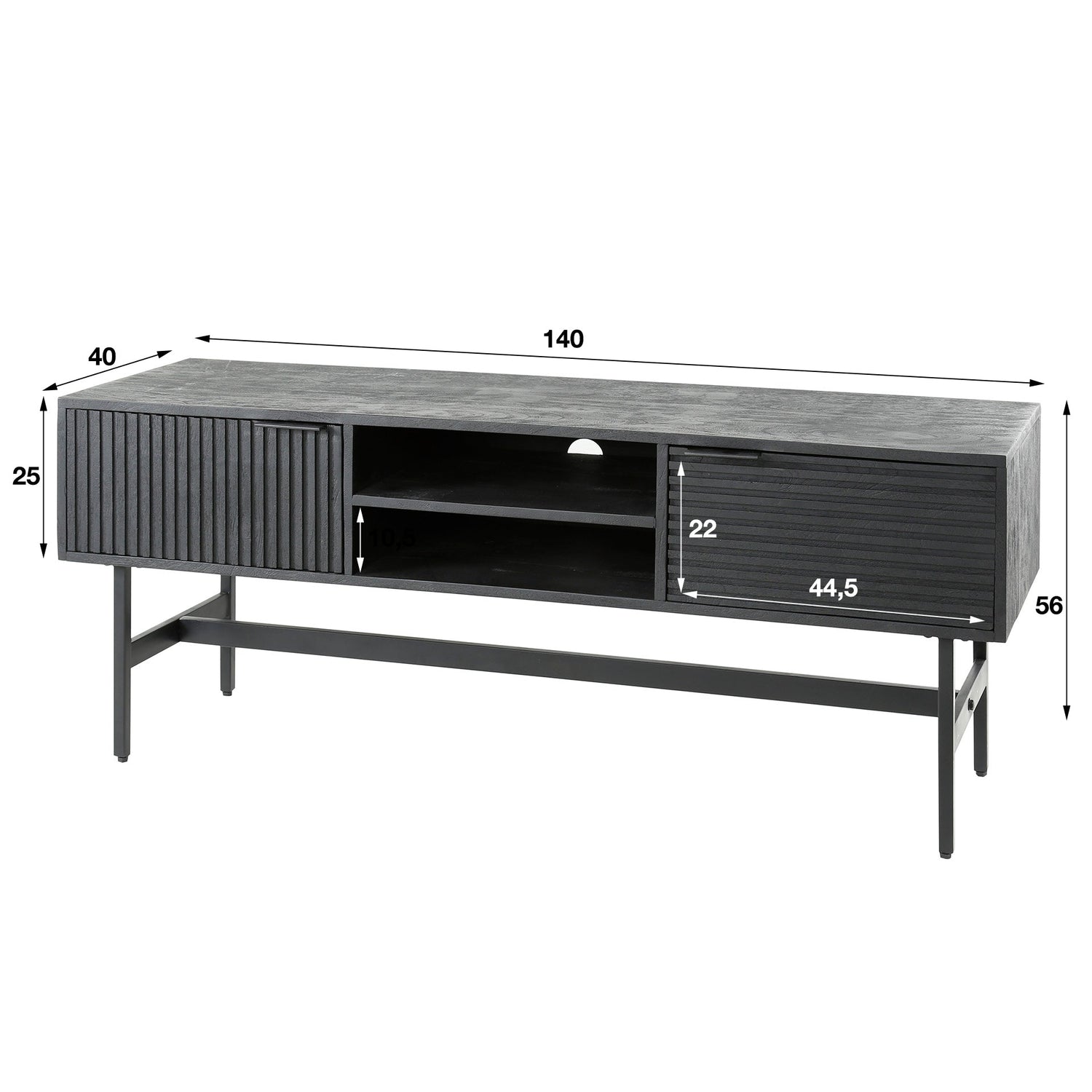 Der TV-Schrank Marina vereint zeitloses Design mit praktischer Funktionalität. Gefertigt aus hochwertigem Mangoholz mit einer edlen schwarzen Oberfläche, bringt dieser TV-Schrank Stil und Ordnung in Ihr Wohnzimmer.