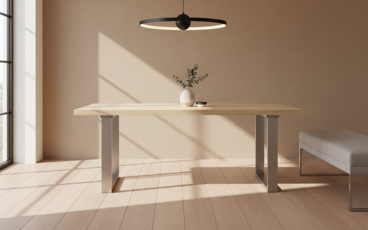 Daytona Esstisch – Ausziehbares Meisterstück in Eiche Bianco und Edelstahl