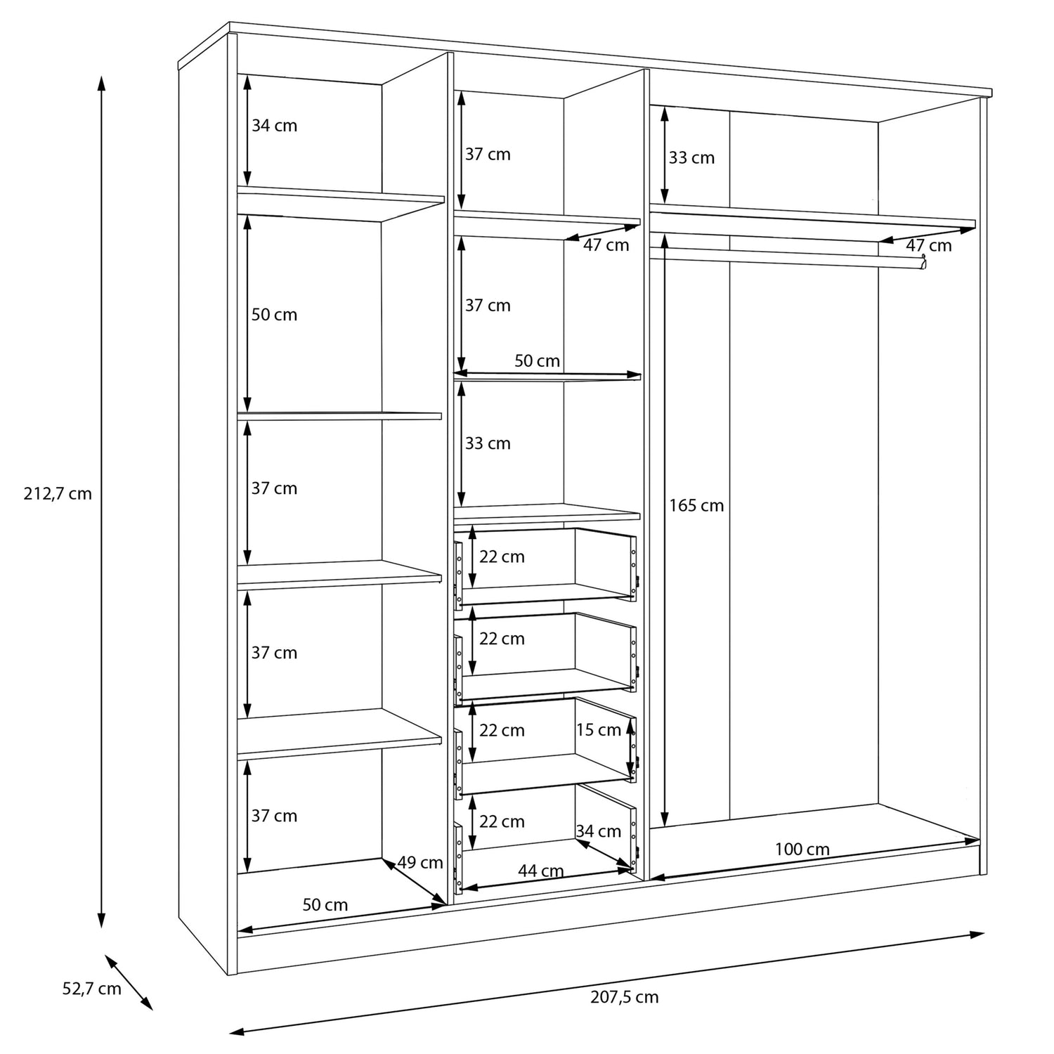 Der Kleiderschrank Sandora ist die perfekte Wahl für alle, die viel Stauraum, eine klare Struktur und modernes Design schätzen. Ob im Schlafzimmer, Ankleidezimmer oder im Eingangsbereich dieser Schrank sorgt für Ordnung, Übersicht und ein harmonisches Raumgefühl.