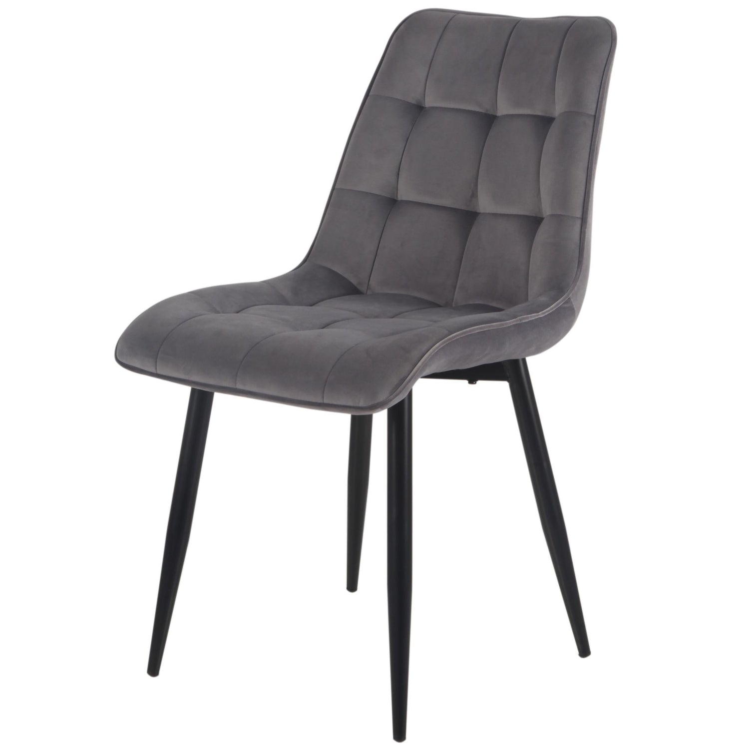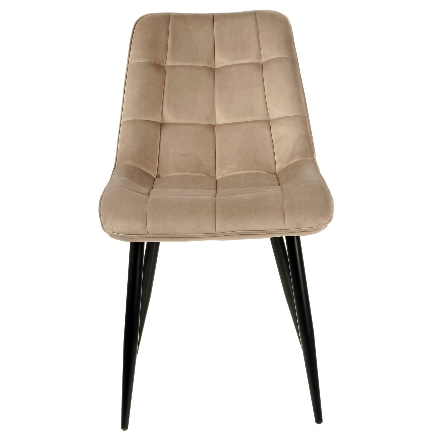 Ein moderner Esszimmerstuhl mit elegantem Design und hohem Sitzkomfort – die perfekte Ergänzung für Ihr Esszimmer. Der Stuhl ist mit einem weichen, samtig-weichen Stoff bezogen, der Komfort und Eleganz vereint. Sitzfläche und Rückenlehne sind mit dekorativen Steppnähten in einem quadratischen Muster versehen, die dem Stuhl eine ansprechende, strukturierte Optik verleihen.