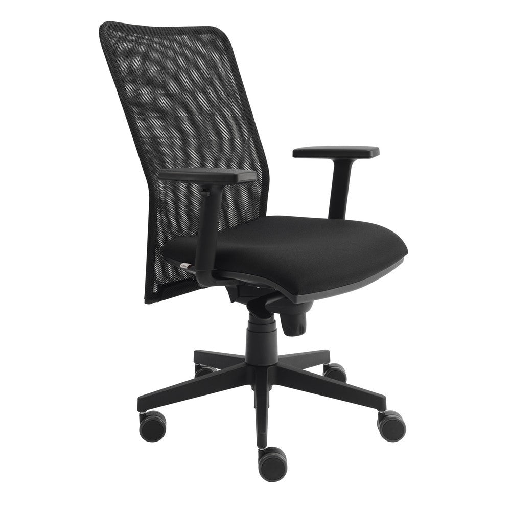 Stuhl: ergonomische Netzrückenlehne, höhenverstellbare T-Armlehnen