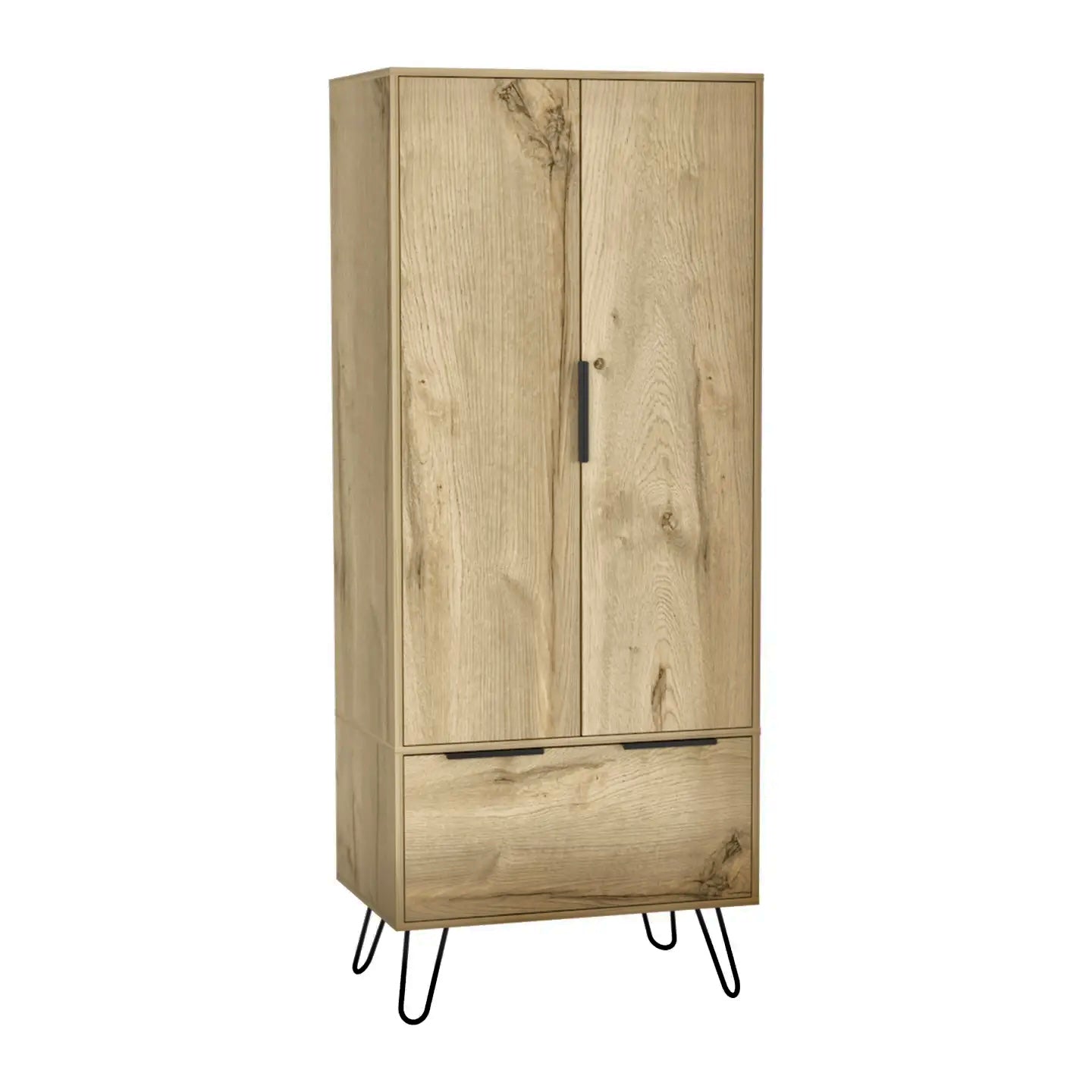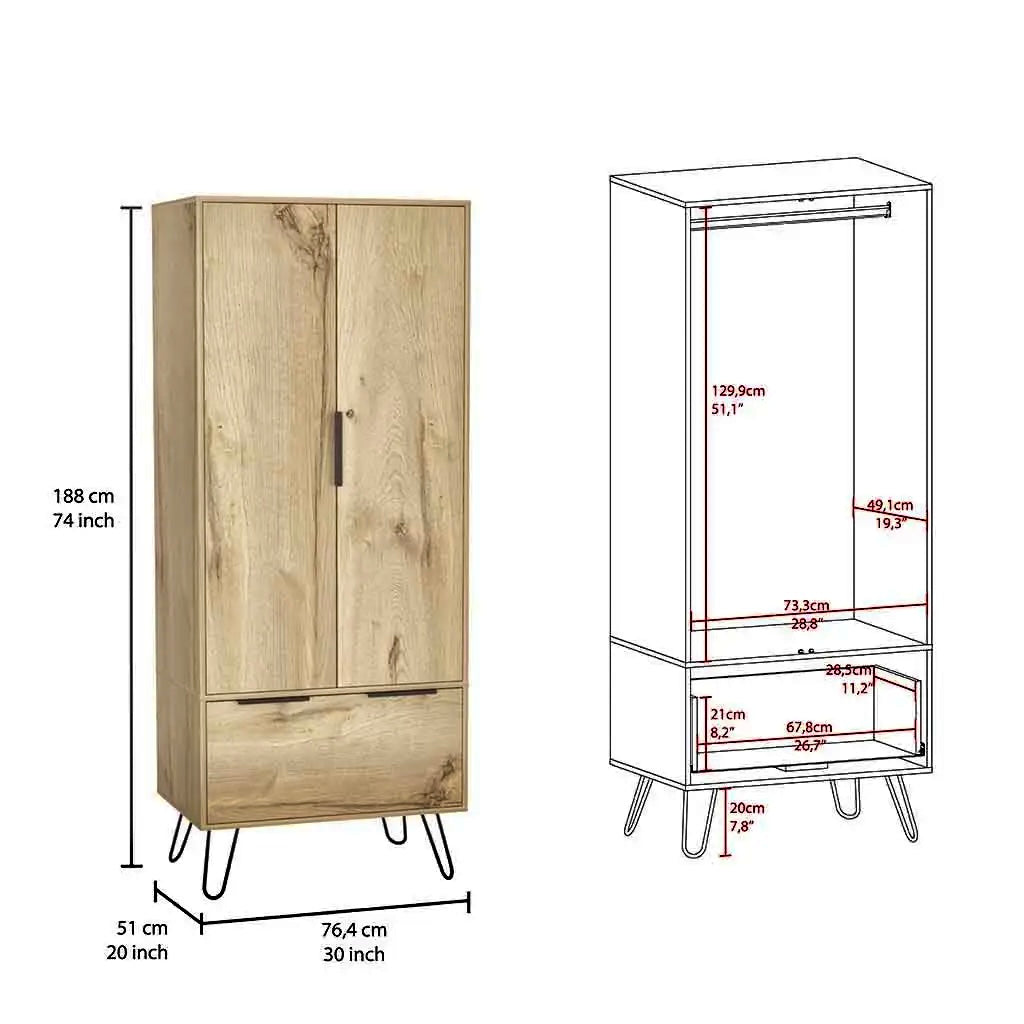 Tauchen Sie ein in zeitgenössische Eleganz mit der Augusta-Garderobe. Hergestellt aus hochwertigem künstlichem Dünenholz, verleiht dieser stilvolle Kleiderschrank jedem Raum eine moderne Note.