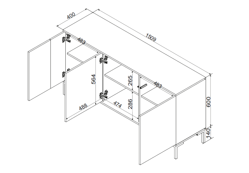| Türen | 2 seitlich zu öffnende Fronten |