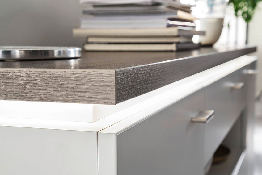 Praktische Funktionen: Viel Stauraum, integrierte Beleuchtung, kabelfreundliches Design.