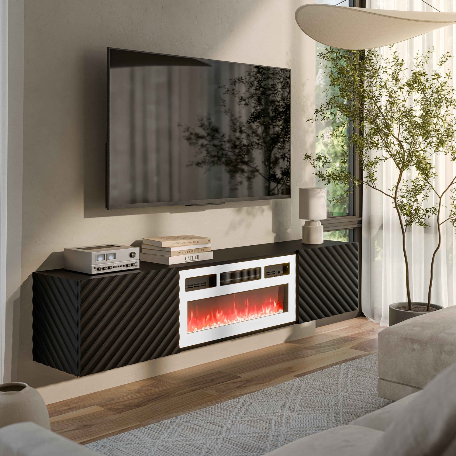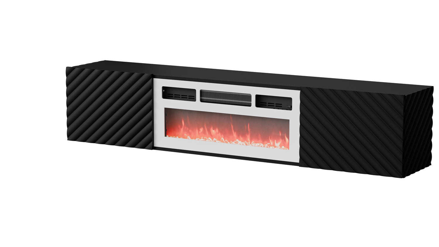TV-Möbel+ Kamin VANTARA 180×40×40cm – Schwarz matt / Eiche
