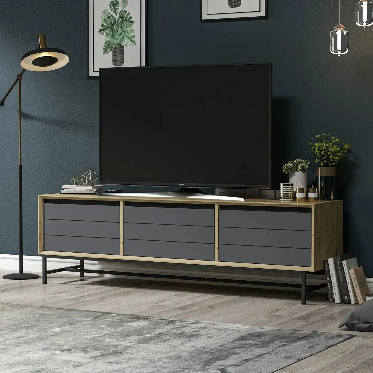 Artisan/Mattschwarz/Anthrazit Produktbreite: 150 cmProdukthöhe: 45 cmProdukttiefe: 35 cmProduktmerkmaleAlle unsere Produkte werden aus 18-mm-Spanplatten mit hochwertiger Melaminoberfläche hergestellt.Unsere Produkte werden unter Verwendung von Beschlägen und Zubehör der Klasse 1 hergestellt.