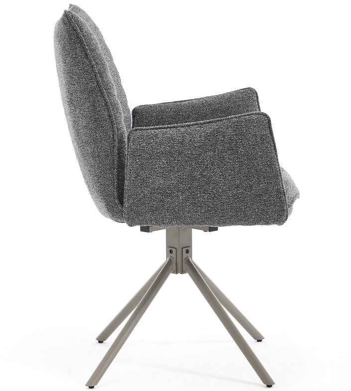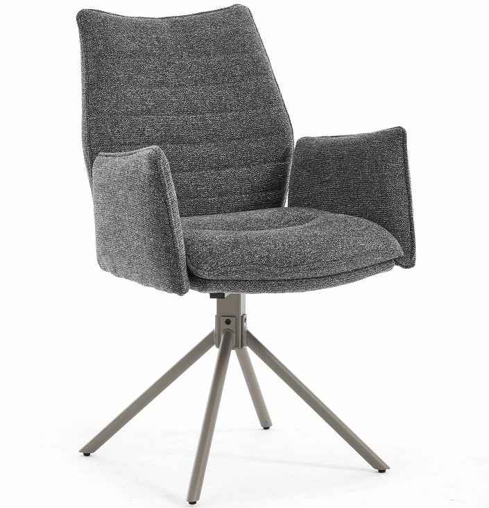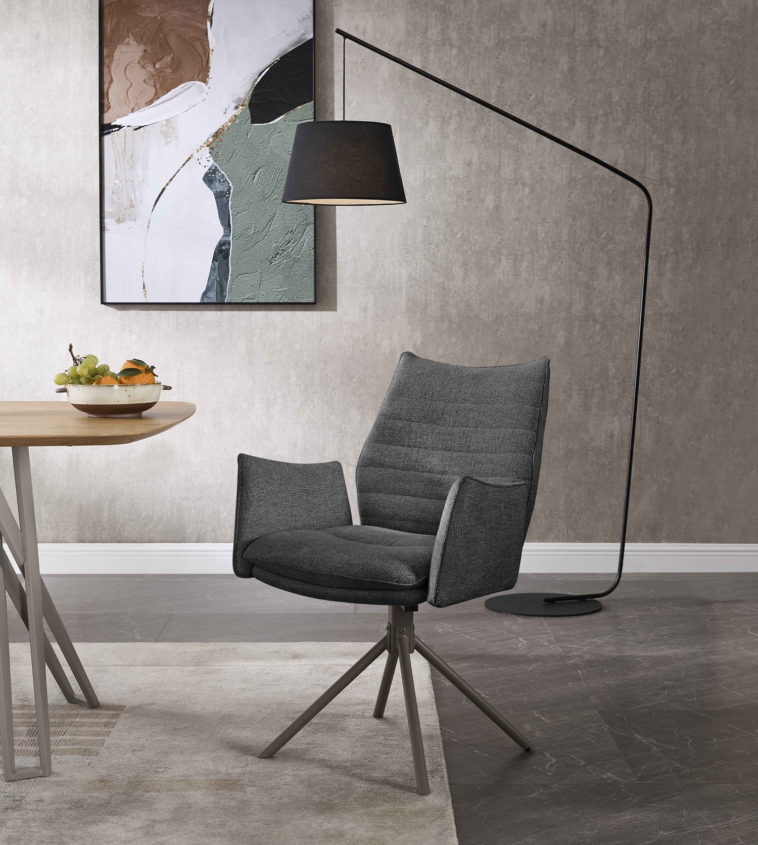 JOHANN Armlehnstuhl 180° Anthrazit - komplett bezogen - Komofrt & Drehbarer Esszimmerstuhl