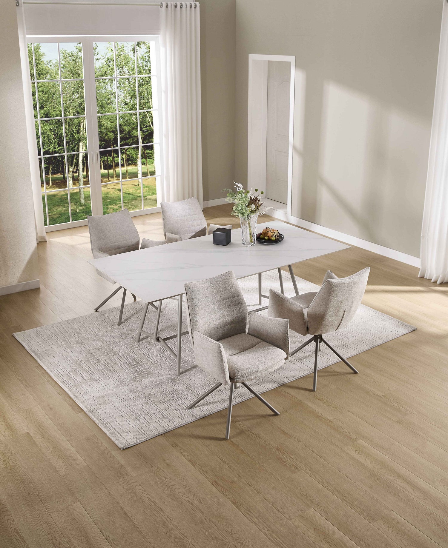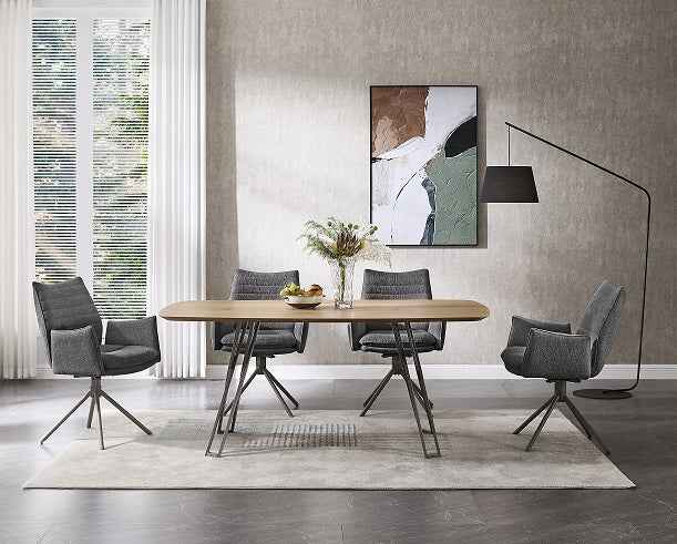 Ein echtes Highlight ist die 180° Drehfunktion mit automatischer Rückstellung. Dadurch kehrt der Stuhl nach dem Aufstehen sanft in seine ursprüngliche Position zurück – ideal für ein stets ordentliches Esszimmer.
