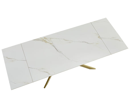 Aurelio Pro Ausziehtisch Keramik Weiß/Gold (140–200 cm)