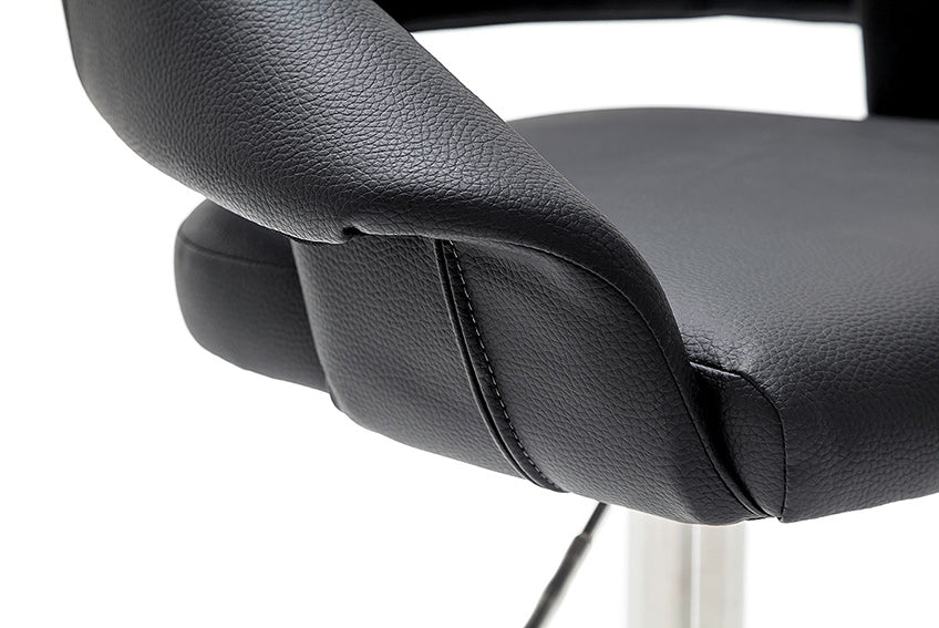 • Höhenverstellbar: Mit einem einfach zu bedienenden Mechanismus kann die Sitzhöhe individuell zwischen 85 cm und 110 cm eingestellt werden – ideal für unterschiedliche Tisch- und Tresenhöhen.